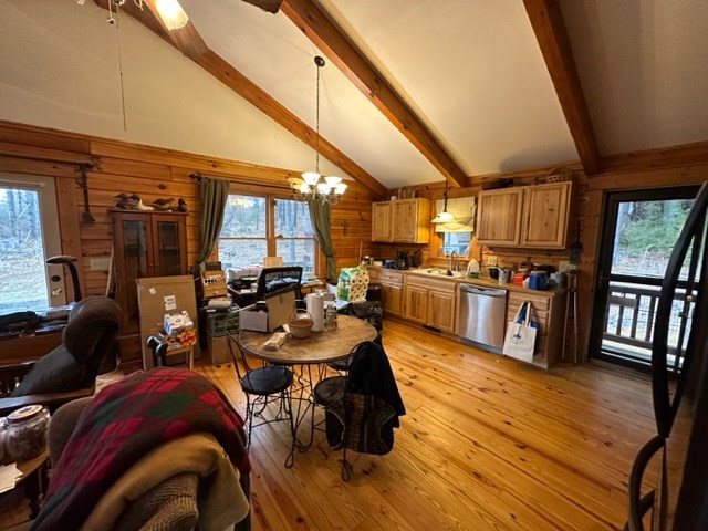 | Exterior: | Exterior: Log Roof: Metal Basement/Foundation: Block Windows: Insulated Windows, Wood Frames |